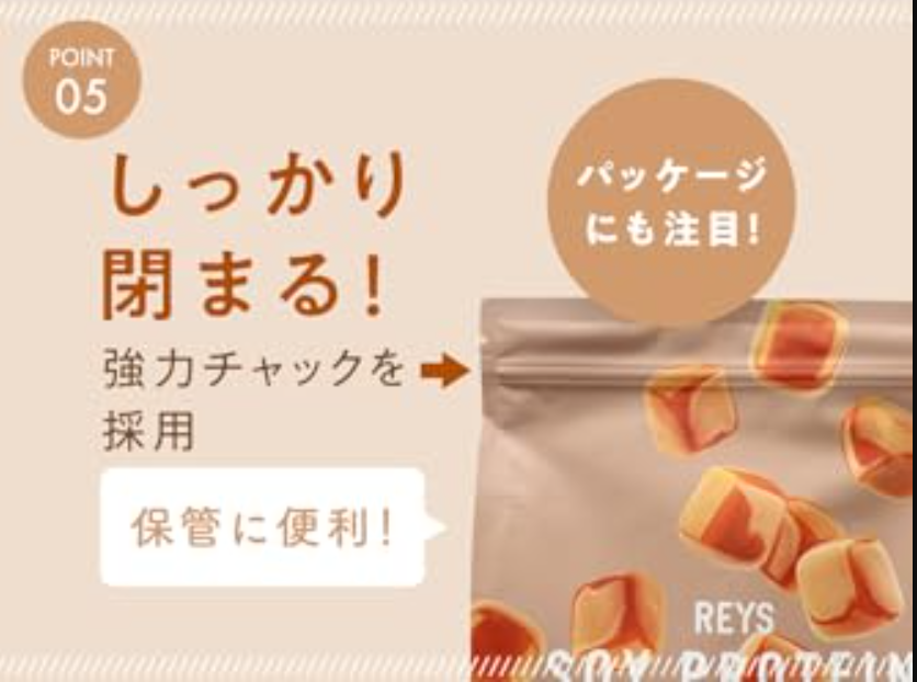 他社のプロテインのチャックが締まりにくいのを経験している私はレイズのチャックを見て感動しました。開け閉めしやすいのでストレスなく作ることが出来ます。細かいところまでこだわりがあります!