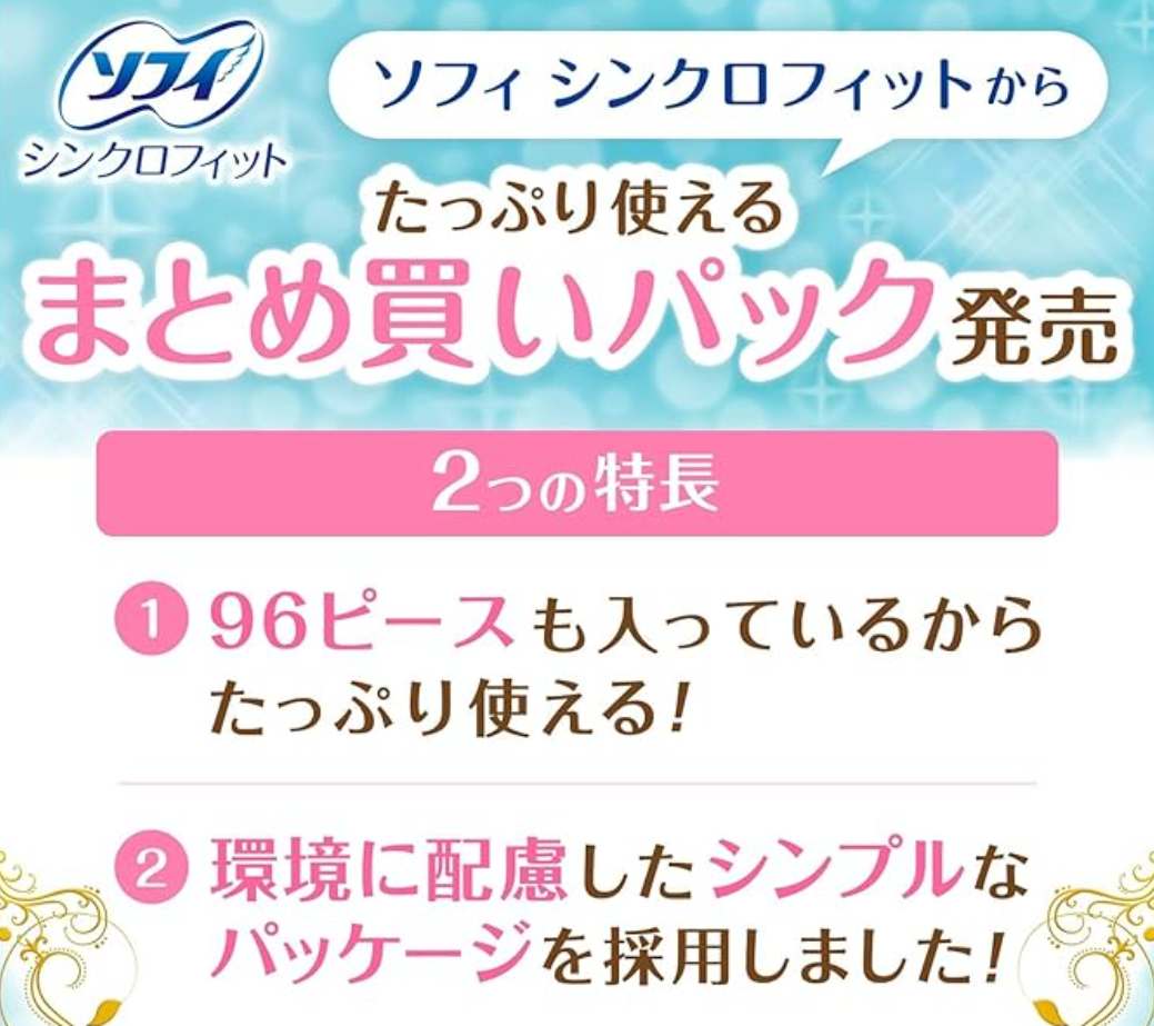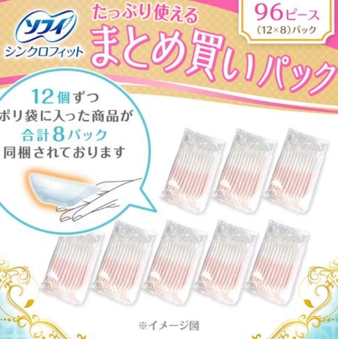 ソフィ シンクロフィットににはお徳用があります。実店舗では見たことがないですが、通販だとお徳用があるようです。楽天市場、Amazonで売られています。毎回薬局で買うのがめんどくさい方や毎回沢山使用する方はお徳用の沢山入ったパックがおすすめです。