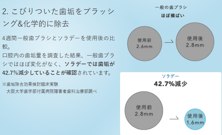 ソラデーリズム2は、ただの音波振動歯ブラシじゃなくて、化学作用も組み合わせたモデルとなっています。その特徴として下記にまとめました。
