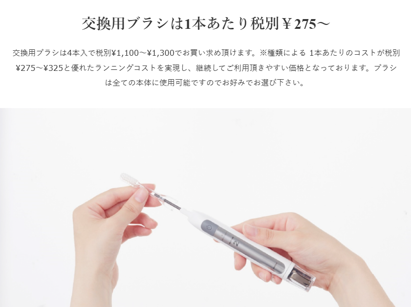 ソラデーリズム2の交換サイクルは1ヶ月から替えブラシの交換目安は「1か月~2か月」。仮に月1回交換するとしても、年間でかかる替えブラシ代は約3630円~となります。歯ブラシは毎日使うので良い状態で使用できるのはとても大切ですね。お値段も継続できるお値段で良いです!
