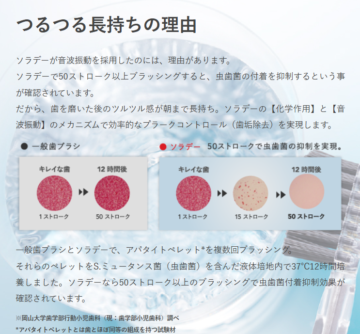電動歯ブラシをはじめてご使用の方にも安心してご利用頂けます。引用元 ソラデーリズム2HP